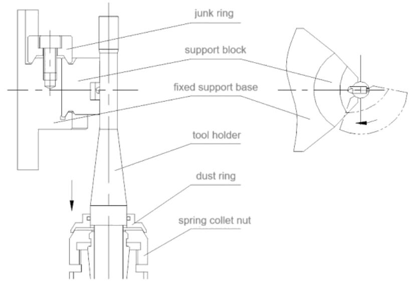 ● A estrutura de suporte do cortador de moscas baseia-se nas características do mesmo tipo de máquinas-ferramentas na Itália. O bloco de suporte é suportado por uma superfície do arco, que tem um bom efeito de suporte; A árvore do cortador é fixada com uma noz de chuck de mola; Ao mesmo tempo, uma ponta móvel é usada na parte superior da árvore do cortador para melhorar a rigidez e precisão do suporte da árvore do cortador. O cortador de moscas tem uma estrutura razoável, oferecendo alta rigidez e alta precisão.